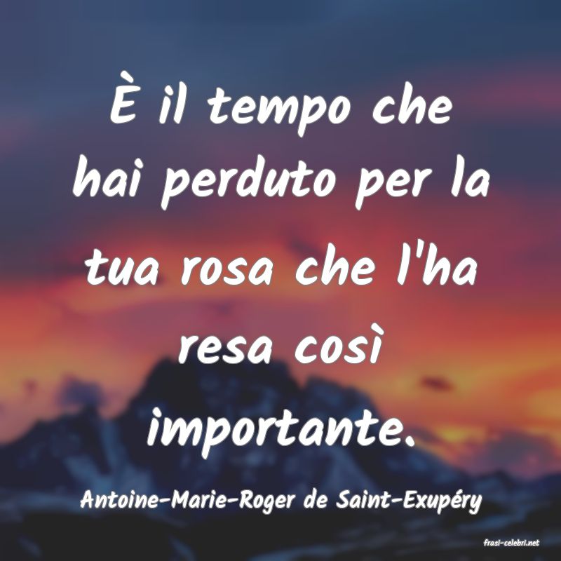 � Il tempo che hai perduto per la tua rosa che l'ha resa cos� importante. Antoine-Marie-Roger de Saint-Exup?ry