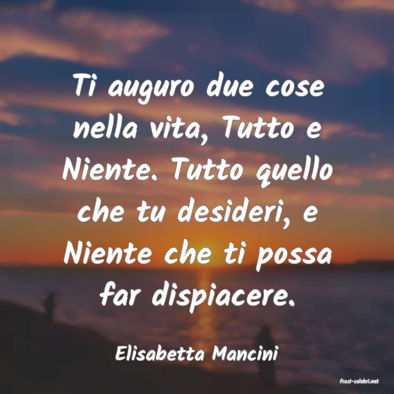 Ti auguro due cose nella vita, Tutto e Niente. Tutto quello che tu desideri, e Niente che ti possa far dispiacere. Elisabetta Mancini