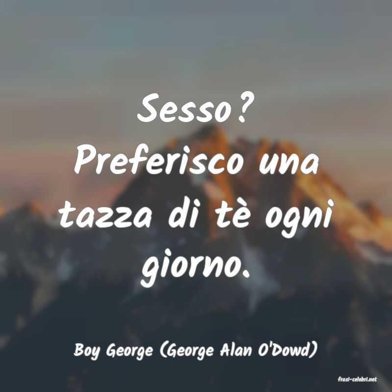 Boy George (George Alan O'Dowd): Sesso? Preferisco una tazza di tè ogni giorno.