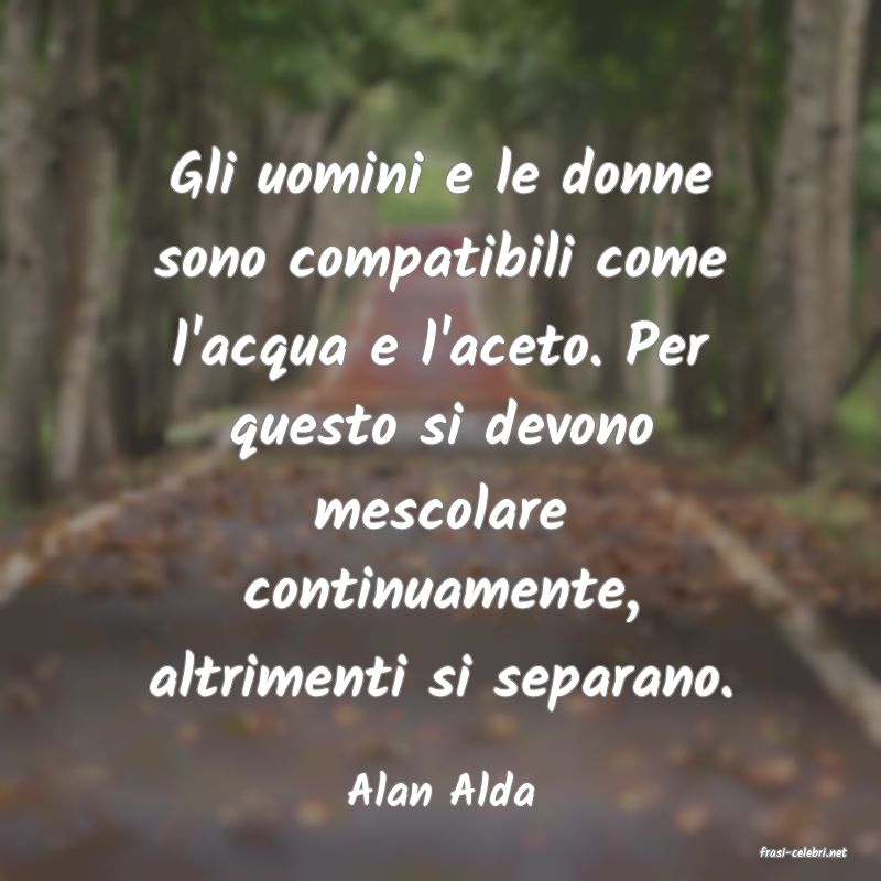 Gli uomini e le donne sono compatibili come l'acqua e l'aceto. Per questo si devono mescolare continuamente, altrimenti si separano.