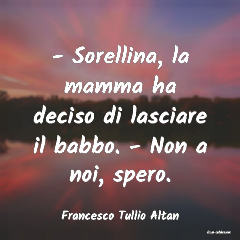 - Sorellina, la mamma ha deciso di lasciare il babbo.