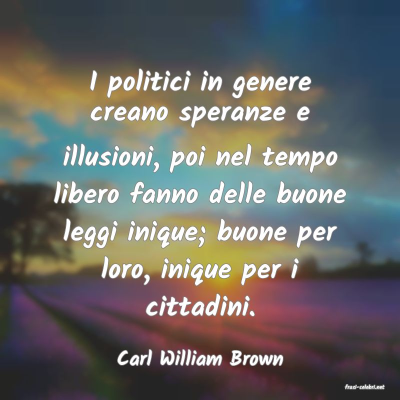 I politici in genere creano speranze e illusioni, poi nel tempo libero fanno delle buone leggi inique; buone per loro, inique per i cittadini.