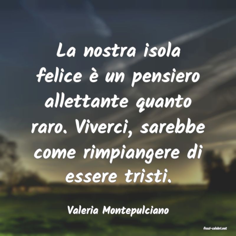 La nostra isola felice � un pensiero allettante quanto raro. Viverci, sarebbe come rimpiangere di essere tristi.