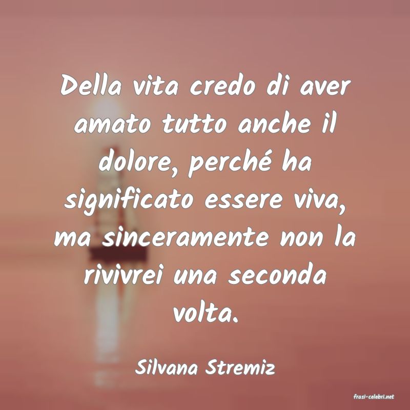 Della vita credo di aver amato tutto anche il dolore, perch� ha significato essere viva, ma sinceramente non la rivivrei una seconda volta.