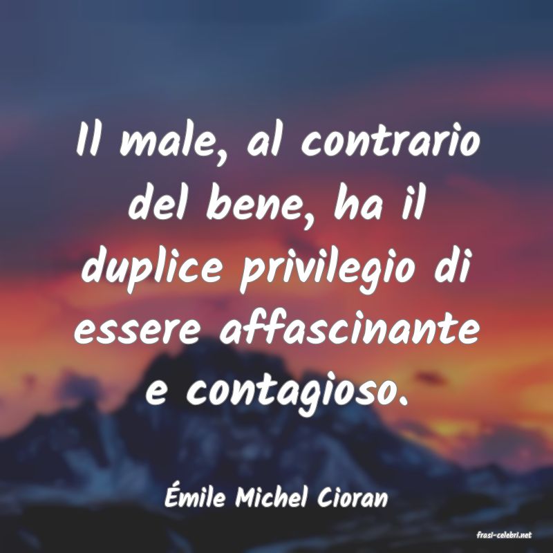 Il male, al contrario del bene, ha il duplice privilegio di essere affascinante e contagioso.