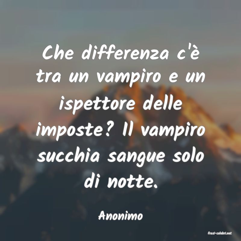 Che differenza c'� tra un vampiro e un ispettore delle imposte? Il vampiro succhia sangue solo di notte.