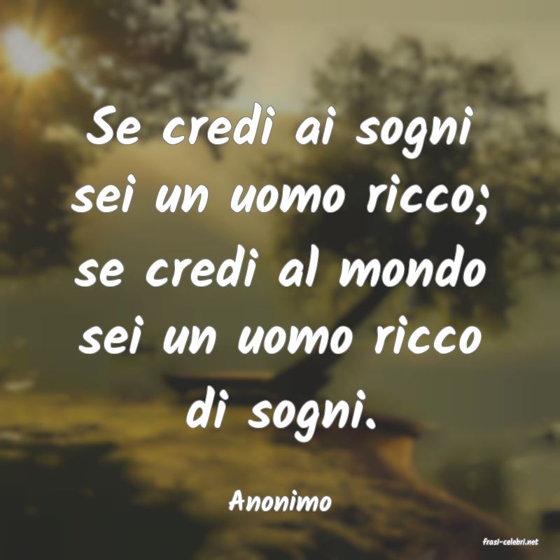 Se credi ai sogni sei un uomo ricco; se credi al mondo sei un uomo ricco di sogni.