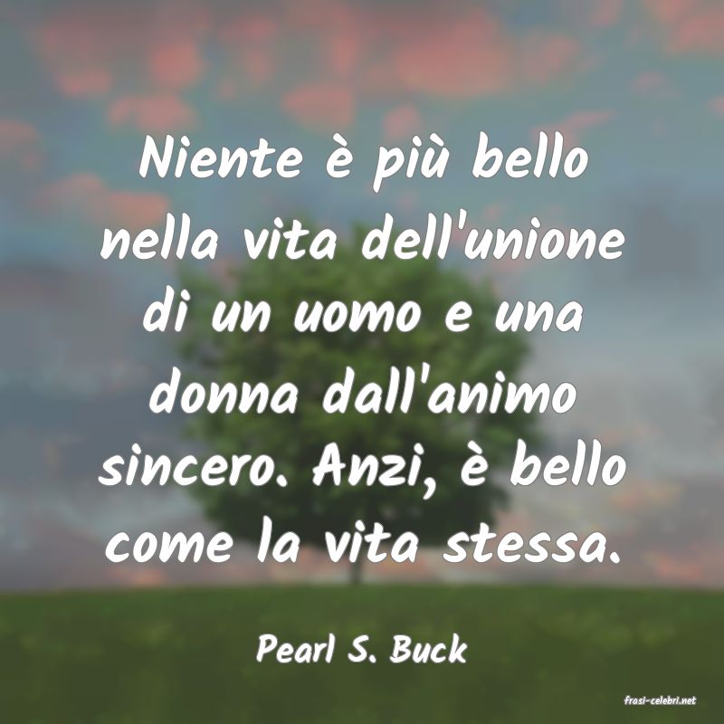 Niente � pi� bello nella vita dell'unione di un uomo e una donna dall'animo sincero. Anzi, � bello come la vita stessa. Pearl S. Buck