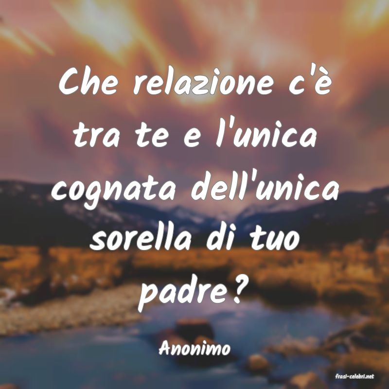 Che relazione c'� tra te e l'unica cognata dell'unica sorella di tuo padre?