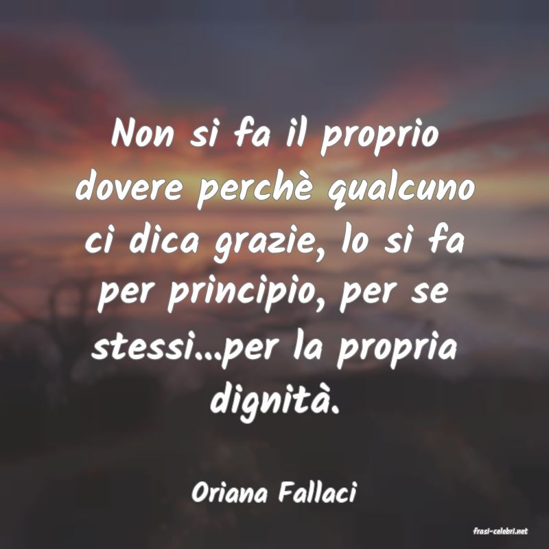 Non si fa il proprio dovere perch� qualcuno ci dica grazie, lo si fa per principio, per se stessi...per la propria dignit�.