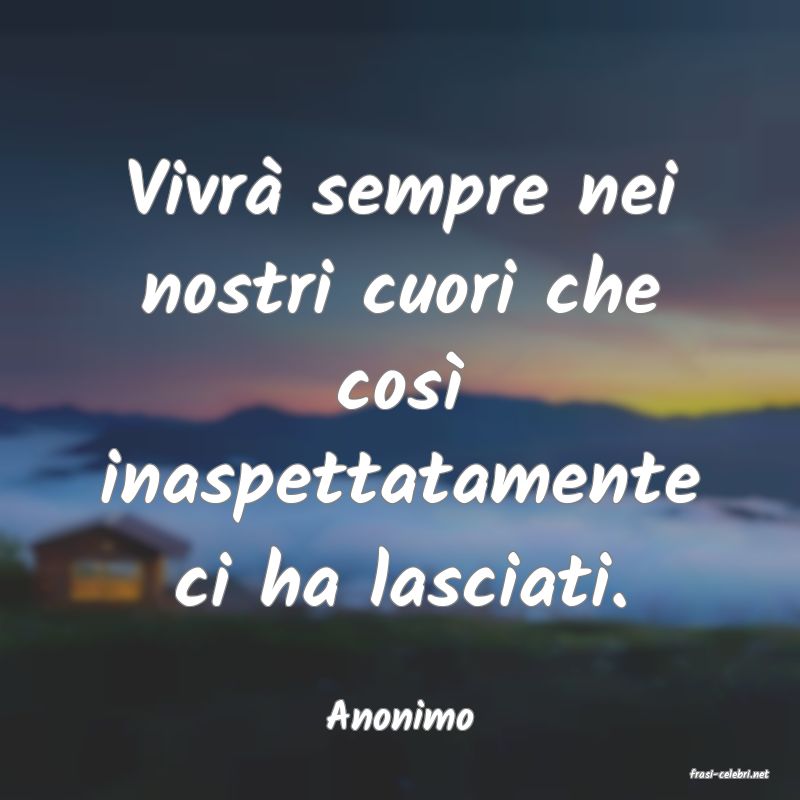 Vivr� sempre nei nostri cuori che cos� inaspettatamente ci ha lasciati.