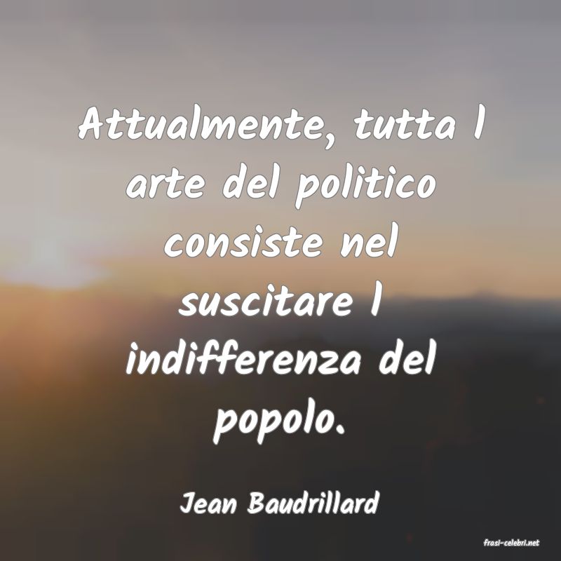 Attualmente, tutta l arte del politico consiste nel suscitare l indifferenza del popolo. Jean Baudrillard