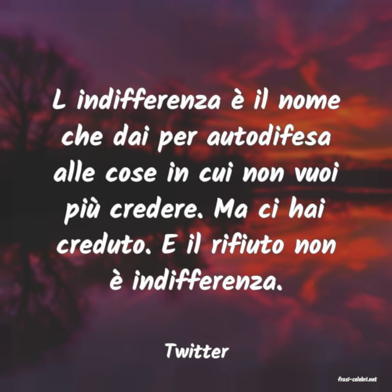 L indifferenza � il nome che dai per autodifesa alle cose in cui non vuoi pi� credere. Ma ci hai creduto. E il rifiuto non � indifferenza.