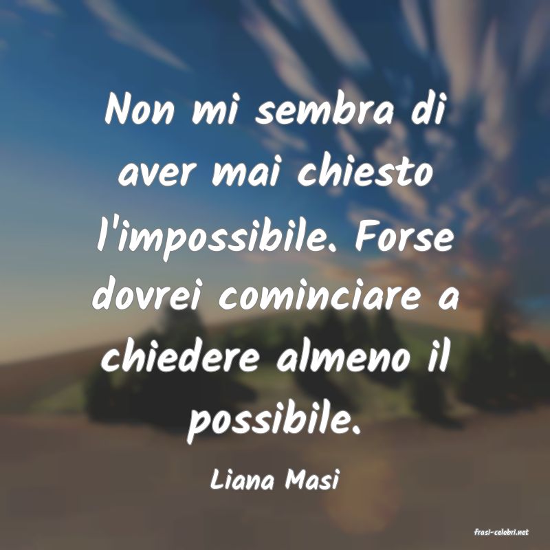 Non mi sembra di aver mai chiesto l'impossibile. Forse dovrei cominciare a chiedere almeno il possibile.