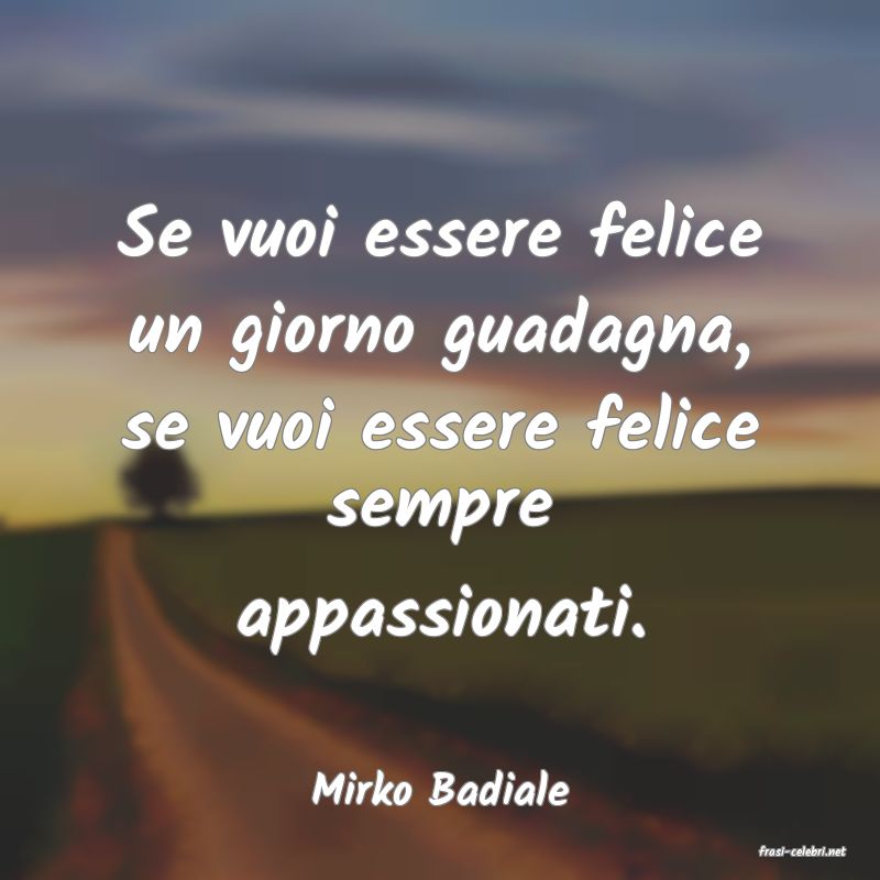 Se vuoi essere felice un giorno guadagna, se vuoi essere felice sempre appassionati.