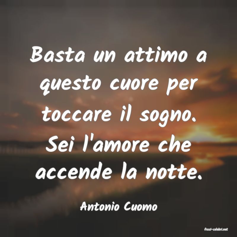Basta un attimo a questo cuore per toccare il sogno. Sei l'amore che accende la notte.
