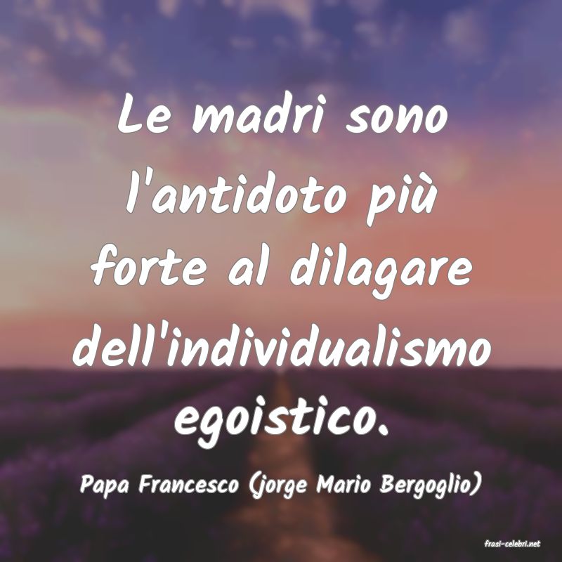 Le madri sono l'antidoto più forte al dilagare dell'individualismo egoistico.