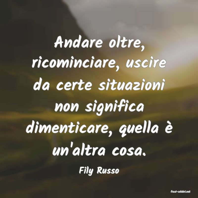 Andare oltre, ricominciare, uscire da certe situazioni non significa dimenticare, quella è un'altra cosa.
