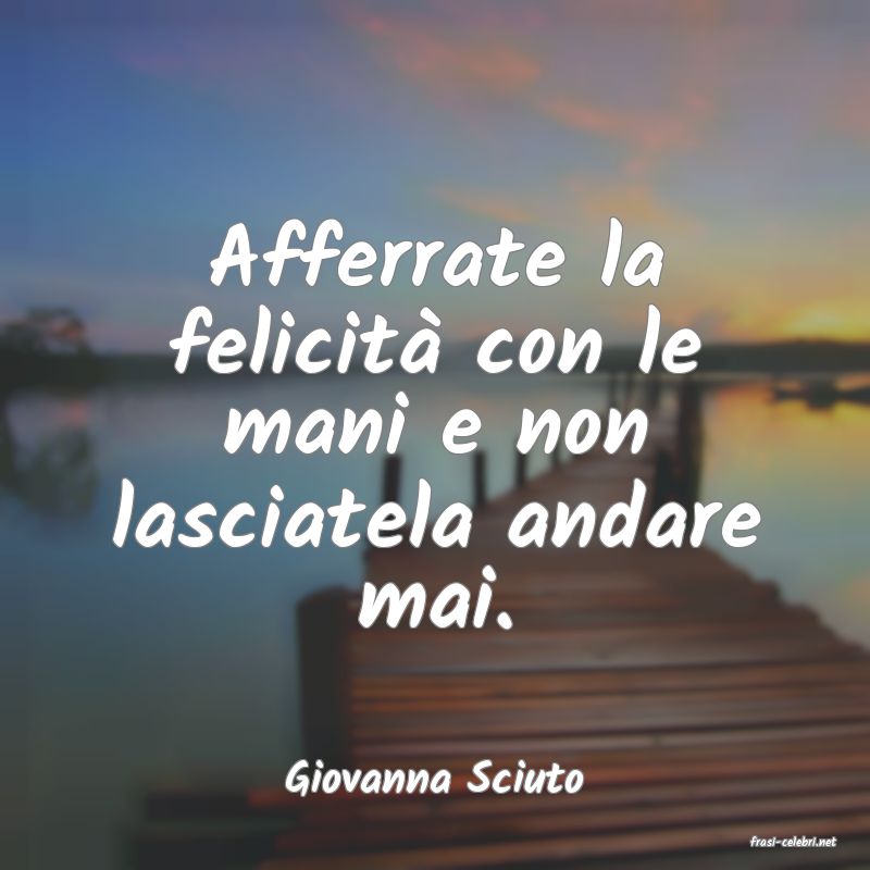 Afferrate la felicità con le mani e non lasciatela andare mai.