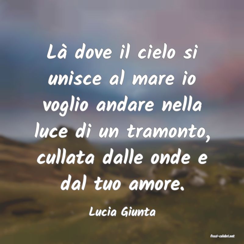 Là dove il cielo si unisce al mare io voglio andare nella luce di un tramonto, cullata dalle onde e dal tuo amore.