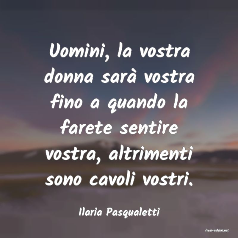 Uomini, la vostra donna sarà vostra fino a quando la farete sentire vostra, altrimenti sono cavoli vostri.