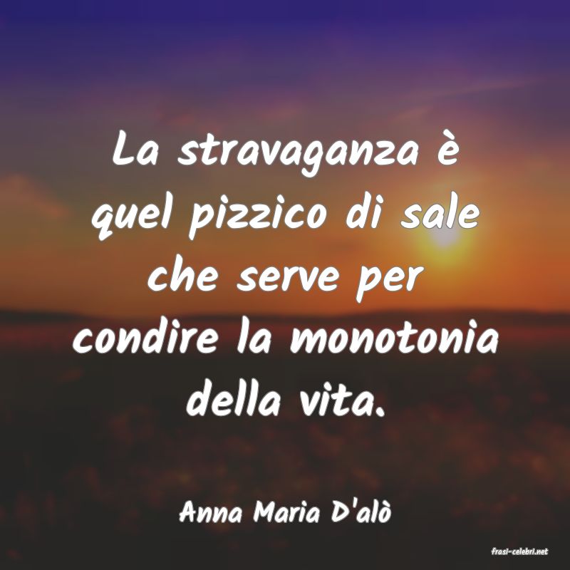 La stravaganza è quel pizzico di sale che serve per condire la monotonia della vita. Anna Maria D'al?