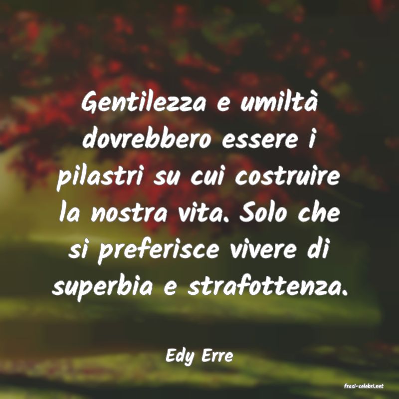 Gentilezza e umiltà dovrebbero essere i pilastri su cui costruire la nostra vita. Solo che si preferisce vivere di superbia e strafottenza.