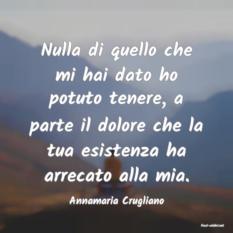 Nulla di quello che mi hai dato ho potuto tenere, a parte il dolore che la tua esistenza ha arrecato alla mia.