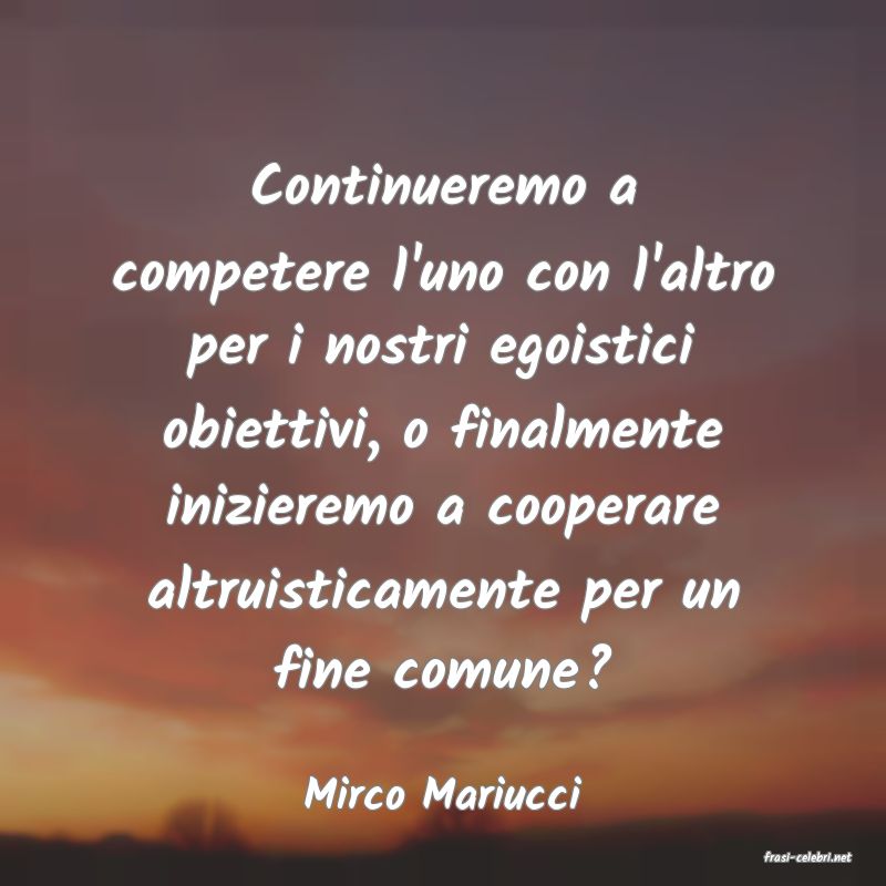 Continueremo a competere l'uno con l'altro per i nostri egoistici obiettivi, o finalmente inizieremo a cooperare altruisticamente per un fine comune?