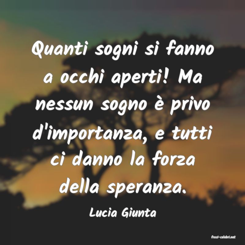 Quanti sogni si fanno a occhi aperti! Ma nessun sogno è privo d'importanza, e tutti ci danno la forza della speranza.