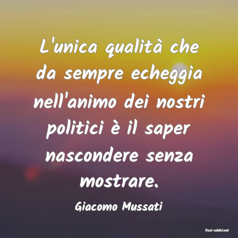 L'unica qualità che da sempre echeggia nell'animo dei nostri politici è il saper nascondere senza mostrare.