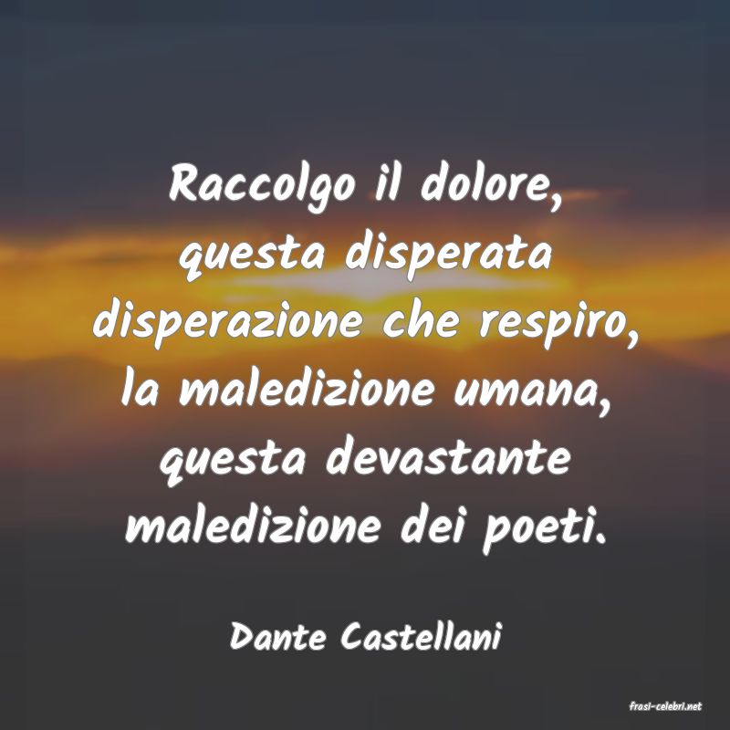Raccolgo il dolore, questa disperata disperazione che respiro, la maledizione umana, questa devastante maledizione dei poeti.