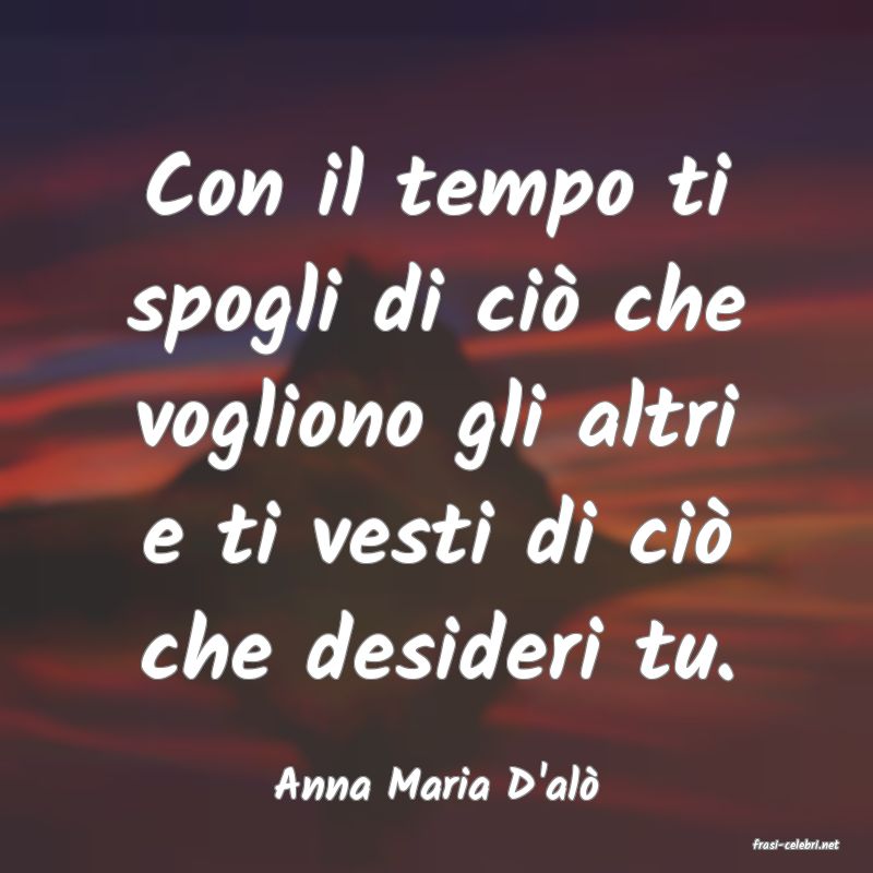 Con il tempo ti spogli di ciò che vogliono gli altri e ti vesti di ciò che desideri tu. Anna Maria D'al?