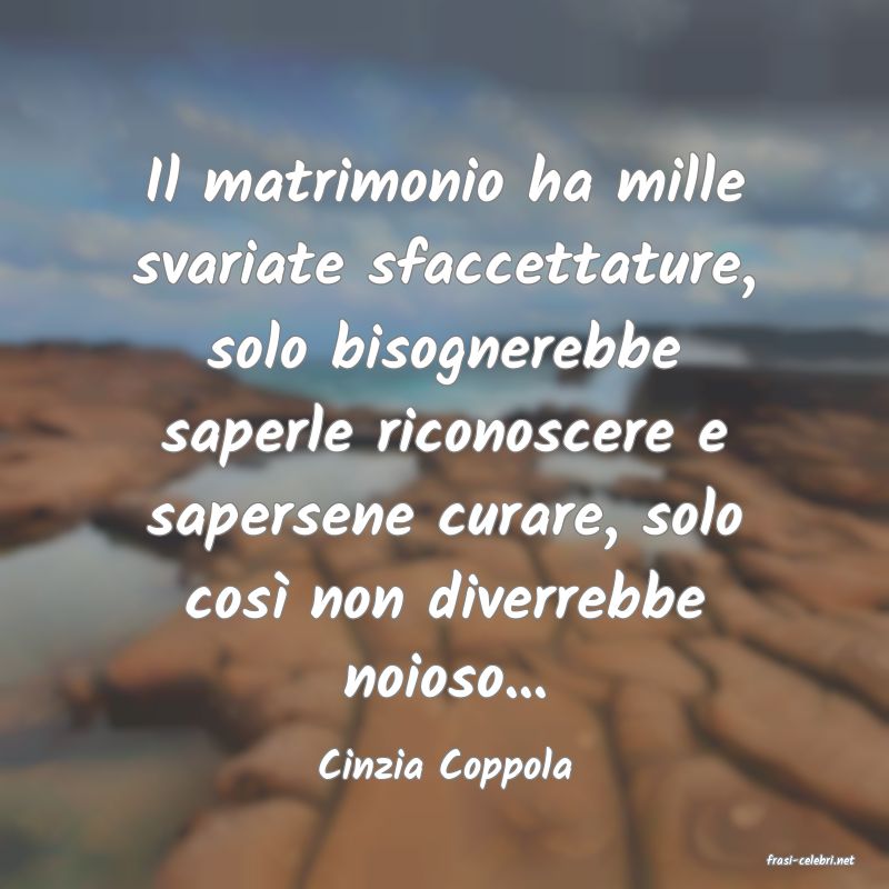 Il matrimonio ha mille svariate sfaccettature, solo bisognerebbe saperle riconoscere e sapersene curare, solo così non diverrebbe noioso...