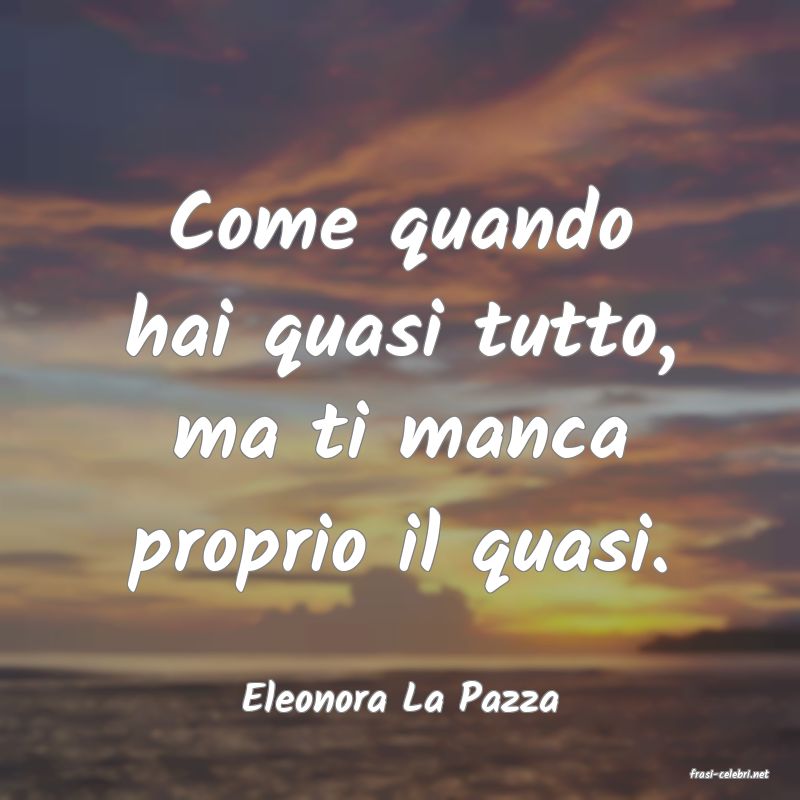 Come quando hai quasi tutto, ma ti manca proprio il quasi.