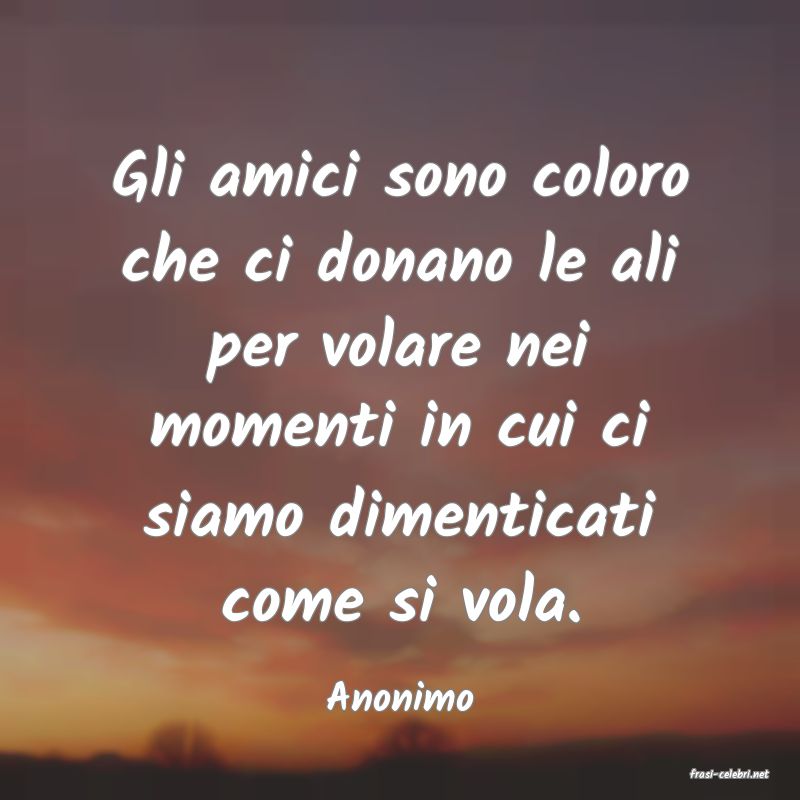 Gli amici sono coloro che ci donano le ali per volare nei momenti in cui ci siamo dimenticati come si vola.