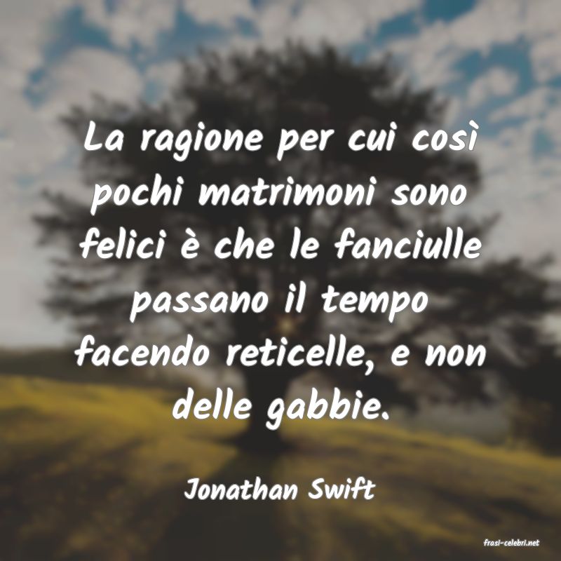 La ragione per cui così pochi matrimoni sono felici è che le fanciulle passano il tempo facendo reticelle, e non delle gabbie.