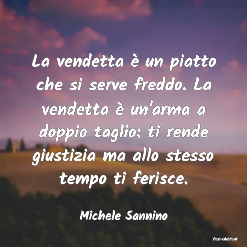 La vendetta è un piatto che si serve freddo. La vendetta è un'arma a doppio taglio: ti rende giustizia ma allo stesso tempo ti ferisce.