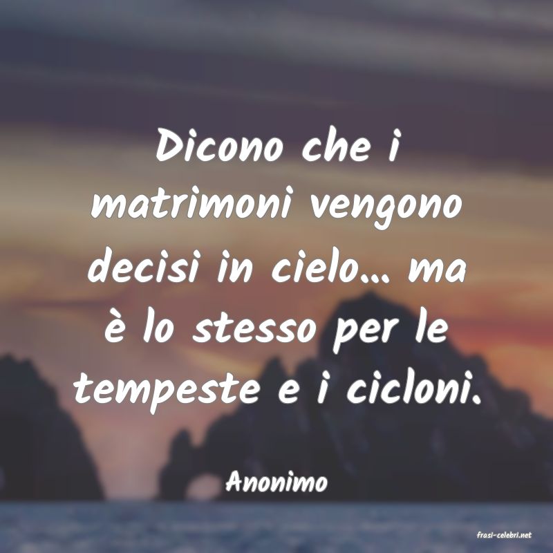 Dicono che i matrimoni vengono decisi in cielo... ma è lo stesso per le tempeste e i cicloni.