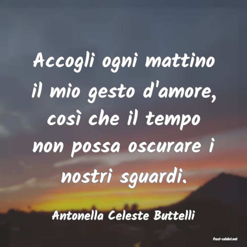 Accogli ogni mattino il mio gesto d'amore, così che il tempo non possa oscurare i nostri sguardi.