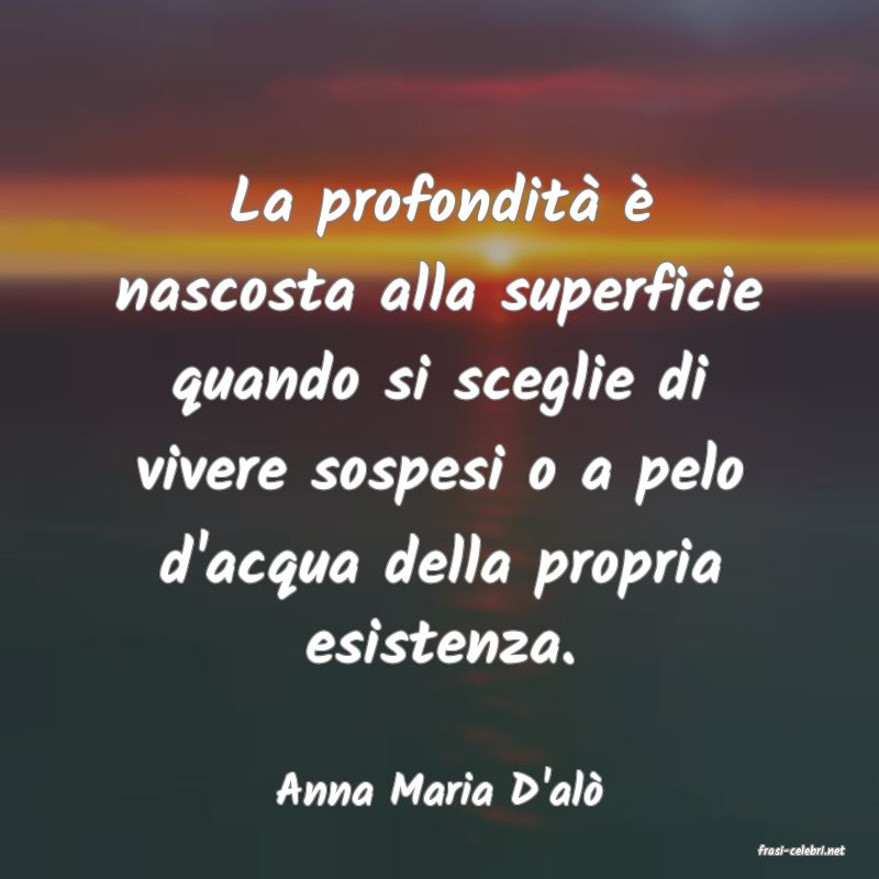 La profondità è nascosta alla superficie quando si sceglie di vivere sospesi o a pelo d'acqua della propria esistenza. Anna Maria D'al?