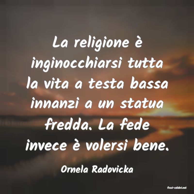 La religione è inginocchiarsi tutta la vita a testa bassa innanzi a un statua fredda. La fede invece è volersi bene.