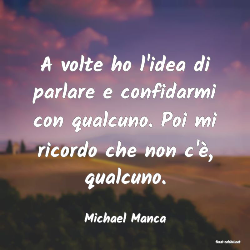 A volte ho l'idea di parlare e confidarmi con qualcuno. Poi mi ricordo che non c'è, qualcuno.