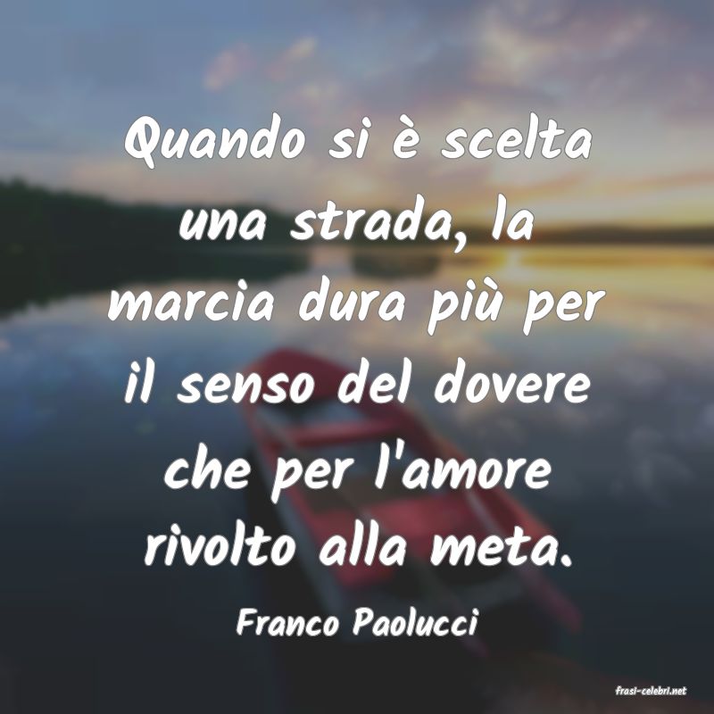 Quando si è scelta una strada, la marcia dura più per il senso del dovere che per l'amore rivolto alla meta.