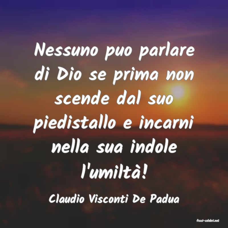 Nessuno puo parlare di Dio se prima non scende dal suo piedistallo e incarni nella sua indole l'umiltà!