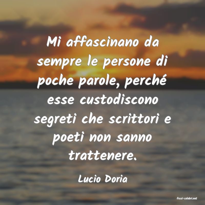 Mi affascinano da sempre le persone di poche parole, perché esse custodiscono segreti che scrittori e poeti non sanno trattenere.