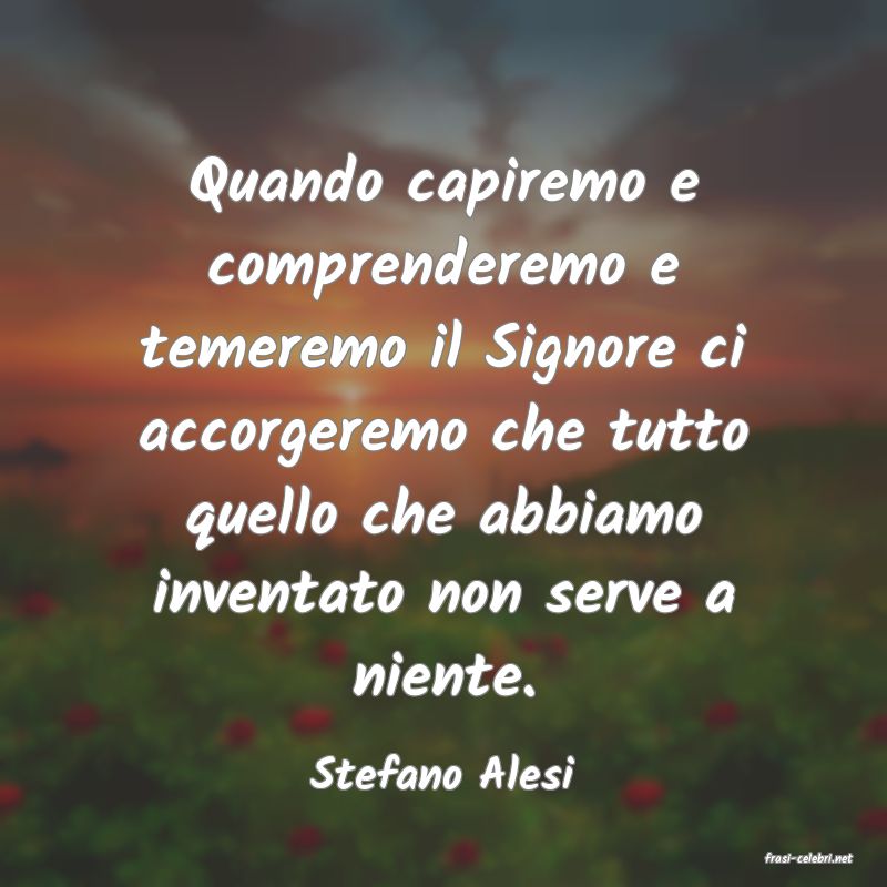 Quando capiremo e comprenderemo e temeremo il Signore ci accorgeremo che tutto quello che abbiamo inventato non serve a niente.