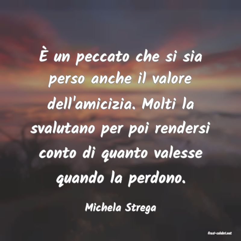 È un peccato che si sia perso anche il valore dell'amicizia. Molti la svalutano per poi rendersi conto di quanto valesse quando la perdono.