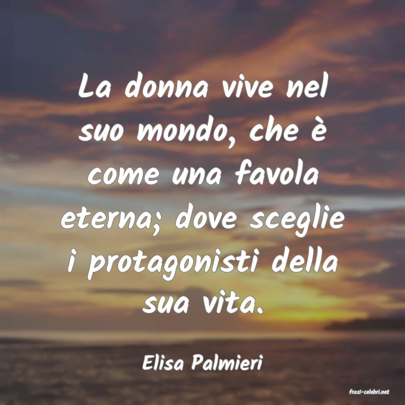 La donna vive nel suo mondo, che è come una favola eterna; dove sceglie i protagonisti della sua vita.