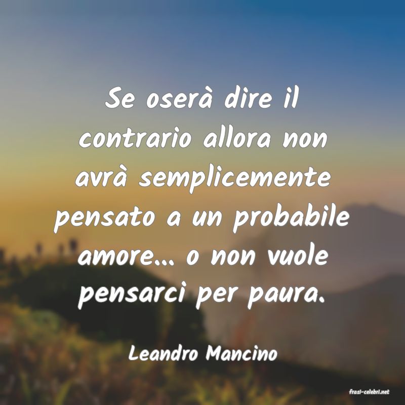 Se oserà dire il contrario allora non avrà semplicemente pensato a un probabile amore... o non vuole pensarci per paura.